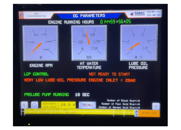 A PLC based SCADA system integrated with Russian system which provides DG load, Shore supply load, multiple breaker feedbacks from the remote locations making the operator/watch keeper for the load sharing and load calculation safely.